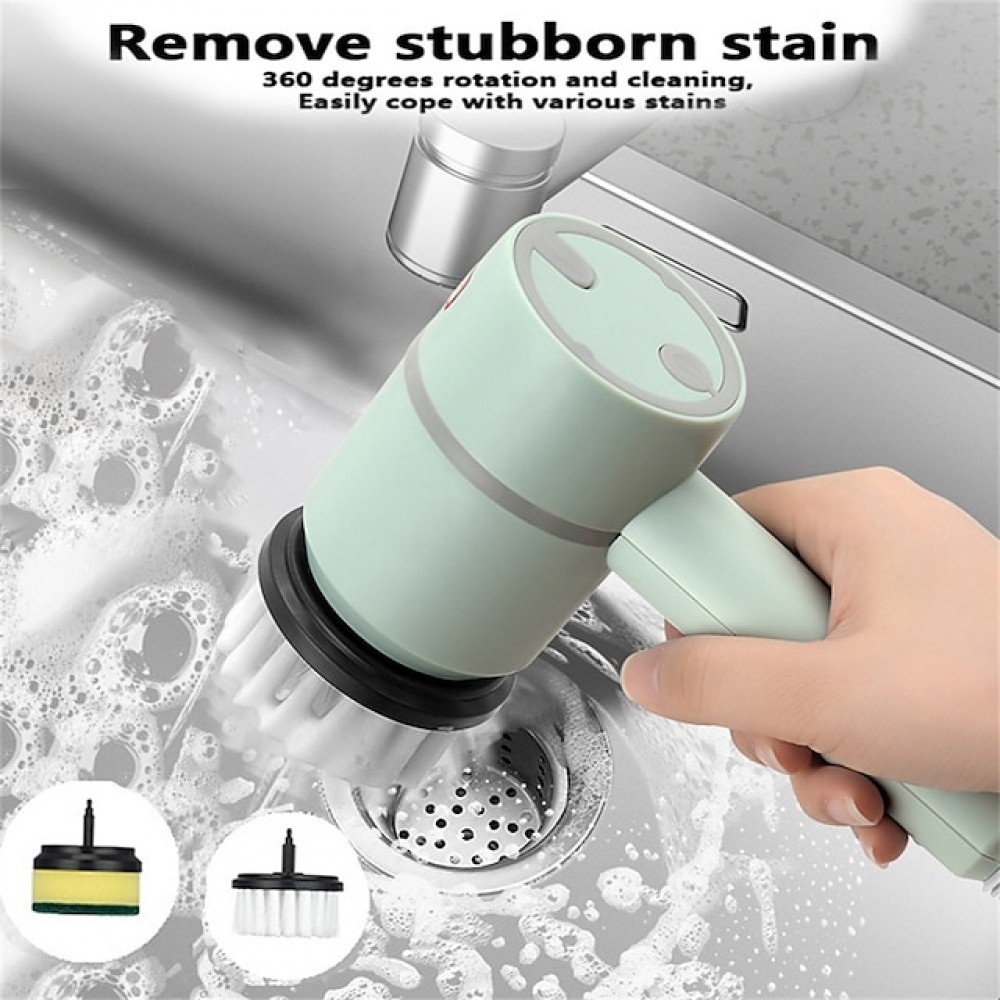 Electric Spin Scrubber Electric Cleaning Brush Cordless Power Scrubber with 2 Replaceable Brush Heads Handheld Kitchenware Brush Spinning Scrub Brush For Home Kitchen Pots Dishes